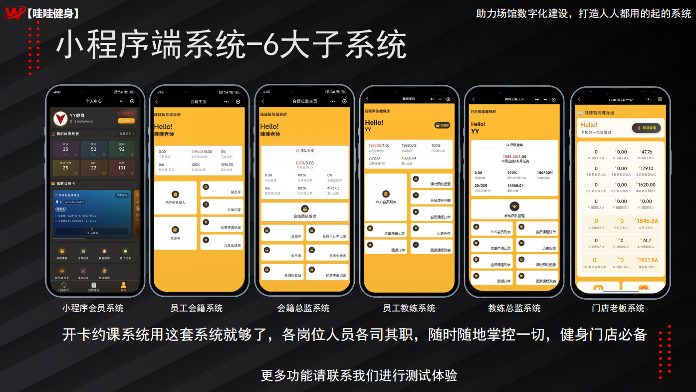 - 多角色协同移动办公:系统设计了会员端、教练端、会籍端、老板端等六大端口,让不同岗位的员工都能通过手机各司其职,随时随地处理业务,实现了高效的移动化协同管理。
